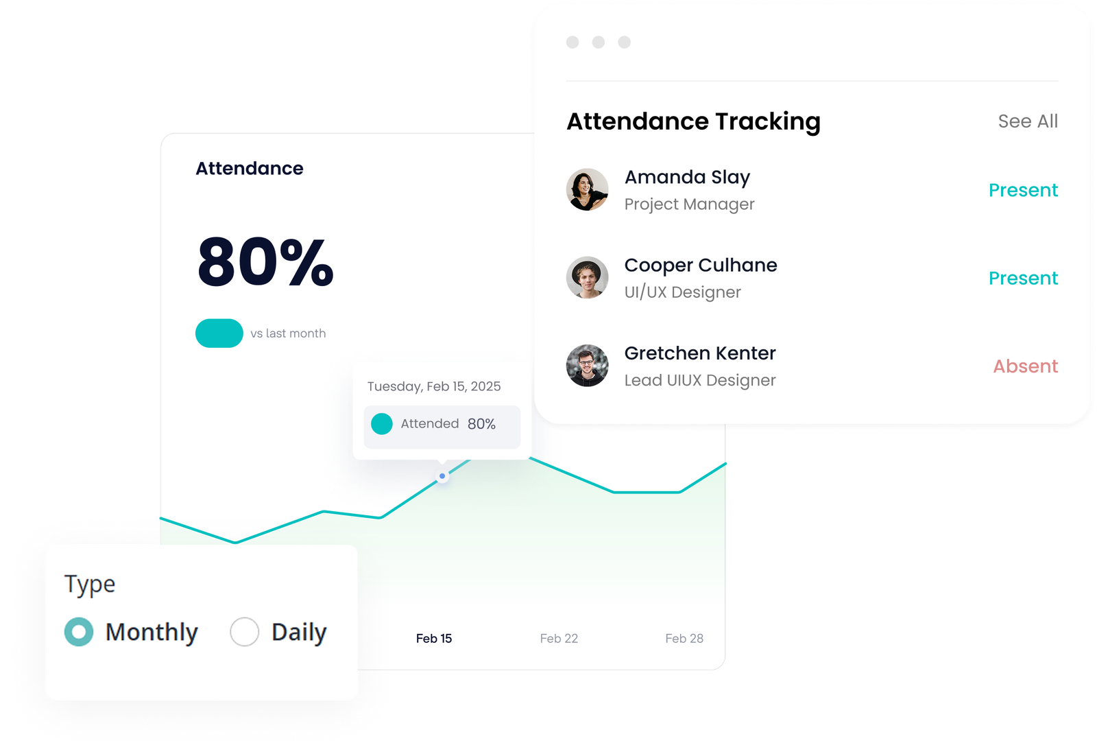 Monitor work hours, overtime, and absences to ensure accurate payroll and compliance.