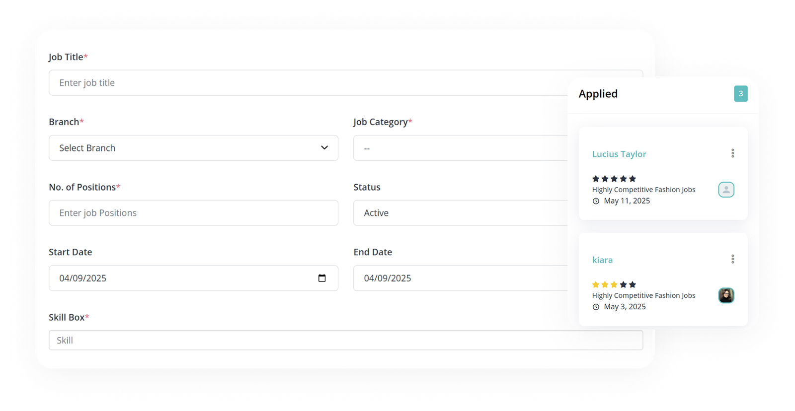 Manage job postings, applications, interviews, and hiring in one streamlined system.