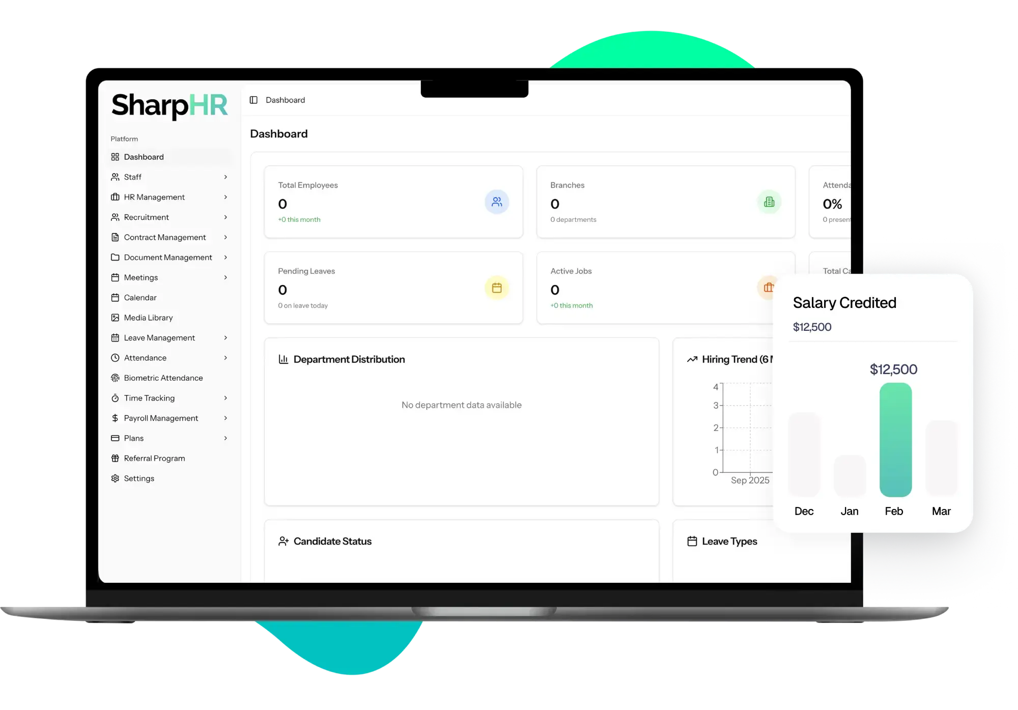 Sharp HR automates tax calculations, deductions, and payslip generation to ensure compliance with labor laws and financial regulations.